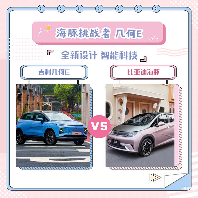 从售价来看,几何E似乎和比亚迪海豚不在一个级别,可是考虑几何E的人应该也会考虑海豚,同为小型车的尺寸,续航基本类似,而且都作为城市里日常通行的代步车,同样是传统国产品牌的精品小车,二者还是有不小的竞争关系的。但是几何E想挑战海豚还是有不小的差距的,首先海豚作为比亚迪最新e平台 3.0打造的车型,其技术含量是几何E这种油改电的车型所不能比的,海豚标配热泵空调、八合一电控系统、刀片电池等全新技术,并且配置水平和动力都处于全面领先,而几何E其本质是几何功夫牛的拉皮车型,而功夫牛又是由之前吉利的燃油车远景X3油改电而来的,并没有什么新的技术。但几何E独特的外观以及科技感满满的内饰以及一些细节上的小心思都有他吸引人的地方,并且几何E的最高配400km续航10.38万的售价与海豚最低配301km续航10.28万的售价还是有不小的吸引力的,并且现在海豚的订单火爆,现在订车最少要等2个月,几何E刚上市,提车的时间会快一些。如果在乎颜值、动力、以及配置那就选海豚,如果只想要一辆好看、好开、好用、长续航的城市代步车,那么几何E是一个不错的选择。