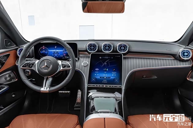 新车内饰标配12.3英寸悬浮式仪表盘、11.9英寸竖置中控屏和全新三幅式多功能方向盘。车机搭载第二代MBUX交互系统,在应用、智能化方面更好的适配国内用户。车内64色氛围灯带搭配全新出风口造型,在暗光环境可营造出更强的豪华氛围。