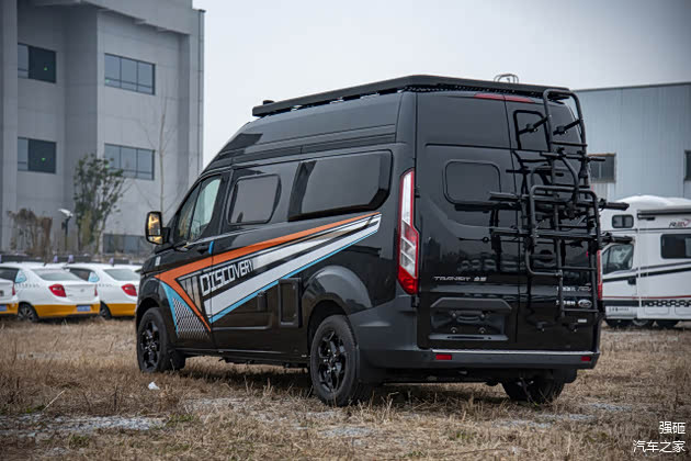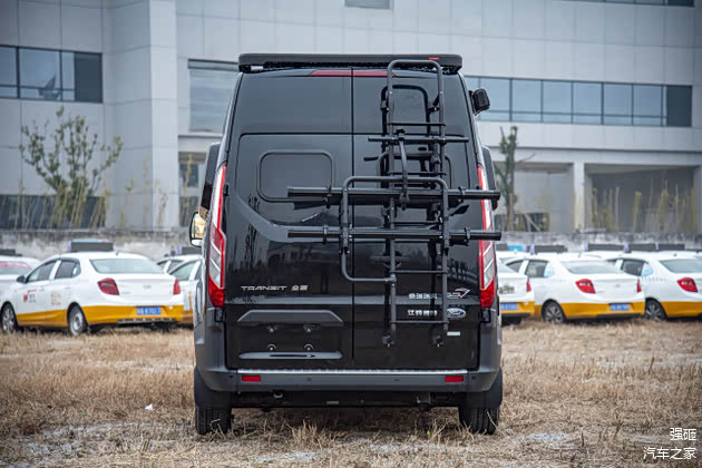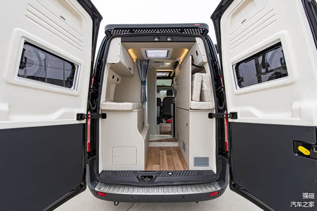 车尾配置的倒车雷达、倒车影像、铝合金爬梯、行车自行车架也与车体相融,熏黑式涂装,仅把分体式行车灯组体现出来,加强开车时的安全性。