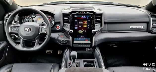 道奇公羊霸王龙在内部设计上还是延续了美式那种比较粗犷的风格,规整的中控台设计看上去比较死板,但丰富的配置会让你不由得为其称赞。目前霸王龙已经通过了国六b排放标准已经正式在平行进口市场中售卖,现车充足,提车手续清晰明了,当天可提。