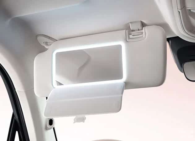 轮圈、仪表、屏幕、天窗也没搞什么区别对待,全系看上去都一个样,一般人分不清高低配。无线充电也是标配,全系10喇叭音响。此外车上化妆也很方便,化妆镜比一般车大,灯也比一般车亮,还有专门放粉底、口红的地方。