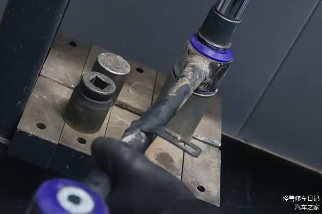 前下摆臂上面有一个胶套是在大梁上的,这设计有点难受,不好拆啊!
