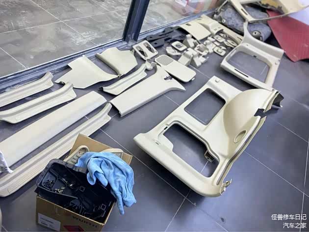 内饰需要大拆解,很多塑料件老化脱漆了,地毯也开胶了。