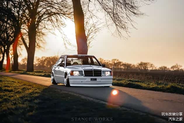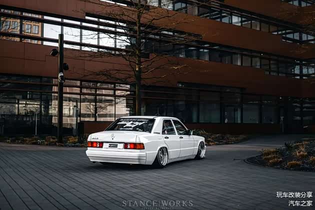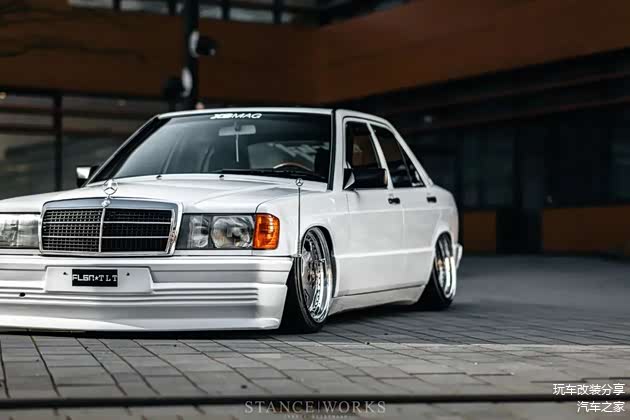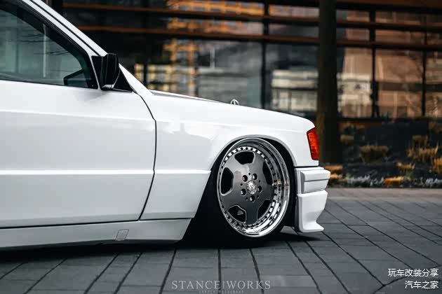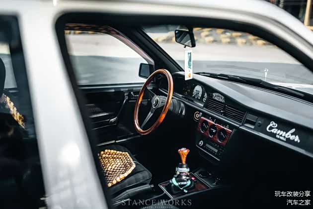 完成了修复工作后,车主开始按照自己的想法打造这台190E,包括改装了TA-Technix的空气悬挂,向AMG AERO III致敬的17寸RH ZW2轮圈,还有桃木方向盘和挡把头,经过了长时间的打造,最终呈现出这个效果,这是一款既经典又时尚的奔驰190E改装作品。