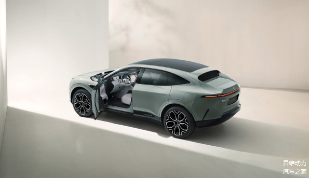 车身侧面,新车没有过多的线条进行修饰,但是通过前后隆起的轮眉以及凸起的车身线条让它看上去非常有力量感。并且新车入门就搭载了21英寸的轮毂,高配更是达到了22英寸,这也对整个车侧的塑造起到了至关重要的作用,所以侧面也是笔者认为阿维塔11的最佳观赏角度。车身尺寸方面,新车长宽高分别为4880/1970/1601mm,轴距为2975mm。尺寸不算大,在这个级别里是一个中规中矩表现。