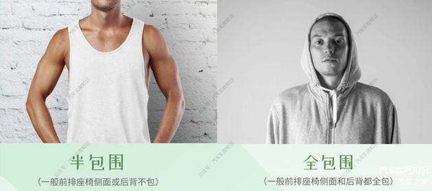 款式:原车织物座椅且无侧安全气囊选全包围,原车座椅有侧安全气囊可以考虑半包围;