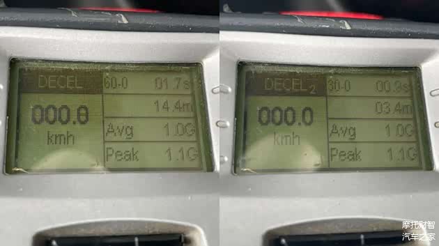 VRS125的刹车手感稍偏硬但制动力线性,能够提供相当不错的制动信心,并且前后碟刹加双通道ABS的设定让这台125小踏板也能放下大力刹车。实测60-0km/h刹停最好成绩为14.4m,30-0km/h刹停最好成绩为3.4m,在大力制动时ABS介入时机恰到好处,帮助车辆快速且安全的刹停。虽然我们测出的这组成绩在同级别车型中已然属于优秀水平,但实际上VRS125可以做到更高,拖后腿的依旧是车身上这套诚远轮胎,在重刹时抓地力表现一般。