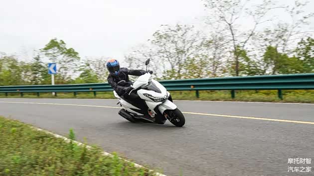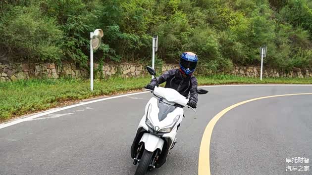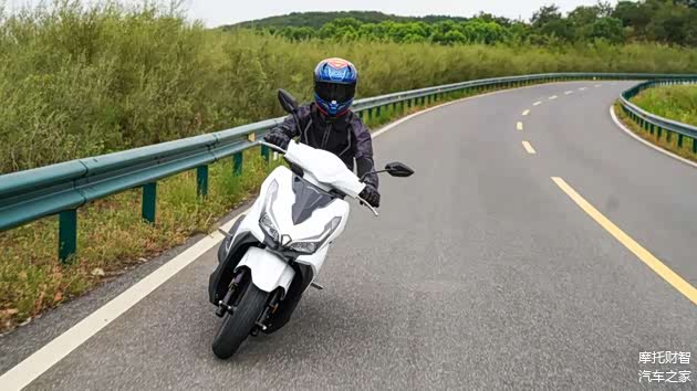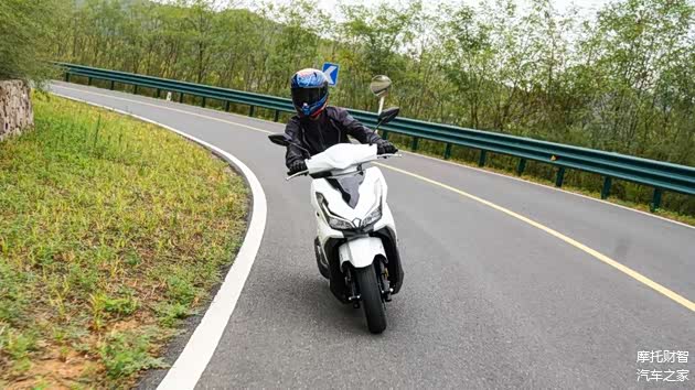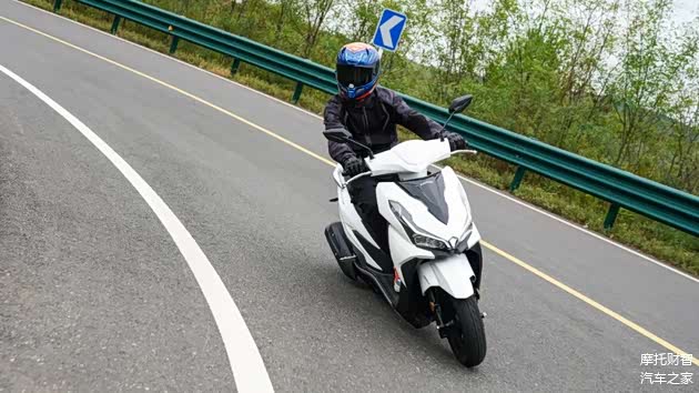 不过VRS125在跑山过程中也有优势,优势之一是有着更大的极限倾角,能以更高的速度过弯,且此时整车稳定性及循迹性表现都相当好,只不过在稍极限一些的跑山状态下这套轮胎并不能给我很强的信心,所以如果有跑山需求的话还是建议换一套抓地力更好的轮胎;其次对比同级踏板VRS125有着更好的中后段加速能力,出弯后动力能够迅速跟上,也更多一些乐趣。