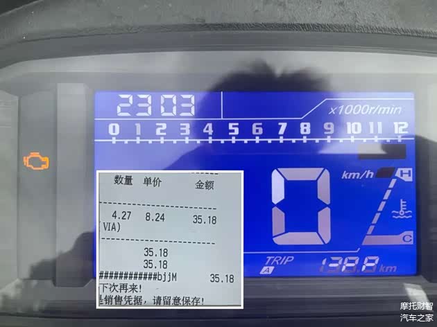 油耗测试,本次共行驶138.8km,最后注入燃油4.27升,换算油耗为3.1L/100km。熟悉我们评测的车友都知道,我们评测比较暴力,尤其本次VRS125大多数是高速运行所以测试油耗偏高很多;实际日常使用油耗根据不同骑行习惯及路况应该在2.2-2.6L/100km之间,这样的油耗范围是根据实际车主的反馈得出,可信度还是比较高的,并且也有车主一箱油跑到过450km。所以VRS125实际续航表现无需担心。