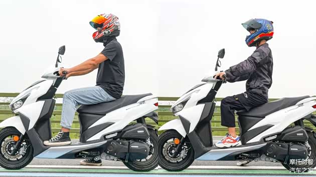 坐姿部分与我们常见的小踏板无异,都属于相当放松的状态,不过得益于大阳VRS125轴距比常见的小踏板都要更长一些,所以它的驾乘空间也会明显优于同类型小踏板,尤其是腿部空间表现。说的具象一点,如果我坐在正常驾驶位,需要将腿完全伸直才能勉强够到前置脚踏,而常见的几款小踏板则不会,这样带来的好处就是部分身高比较高,担心骑小踏板时驾驶空间会比较局促的车友,在大阳VRS125上就完全不需要担心这个问题。