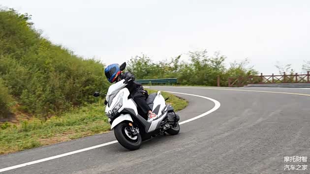 而在山路上,其操控表现依旧相当稳重,倾倒速度可控,倾角也相当可控,只是因为这类踏板车将整个发动机当做后摇臂的结构使得后轮作动不够灵活,加之VRS125发动机、大油箱均集中在车辆后部,整车重心靠后,让车辆后部作动拖沓的感觉更为明显,尤其是在处理一些S弯时,需要快速翻身,此时能够明显感觉到重量更大的后轮部分反应稍慢。