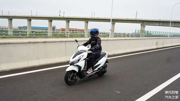 其实更让我惊喜的是大阳VRS125在中高速时整车的表现,为了测试极速,我们在快速路时以油门到底的状态骑行,即使到了表显110km/h,整台车无论是整体性还是稳定性表现都相当优秀,完全不发飘,同时车辆的运行噪音、震动等也都表现良好,也就是我们常说的行驶质感优秀。这也是我骑过的众多小踏板中为数不多的能以一个相当稳定的状态进行中高速巡航的车,VRS125能有这样的表现一方面得益于更重的车身以及更长的轴距,另一方面则是大阳对于车架及整车协调性的调校功力。