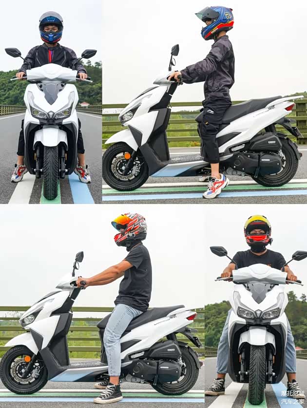 VRS125座高为760mm,数据上略高于雅马哈巧格i以及铃木UY的740mm,实际体感上也是稍高一些,但这点差距并不足以让人产生压力,实测“身高不到一米八实际168cm”的我可以做到双脚半脚掌着地,身高177cm的国瑞同学可以无压力的双脚掌着地;其次大家可能担心VRS125 138kg的整备质量比同级车型重了二三十公斤,在停车时会不会有压力?事实上得益于踏板车设计重心都相当低,所以体感上来说并不觉得会比同级车重多少,如果我不告诉你数据,你甚至都察觉不到VRS125更重一些,所谓的停车压力根本不存在;总的来说,VRS125依旧是一台不挑身高的小踏板。