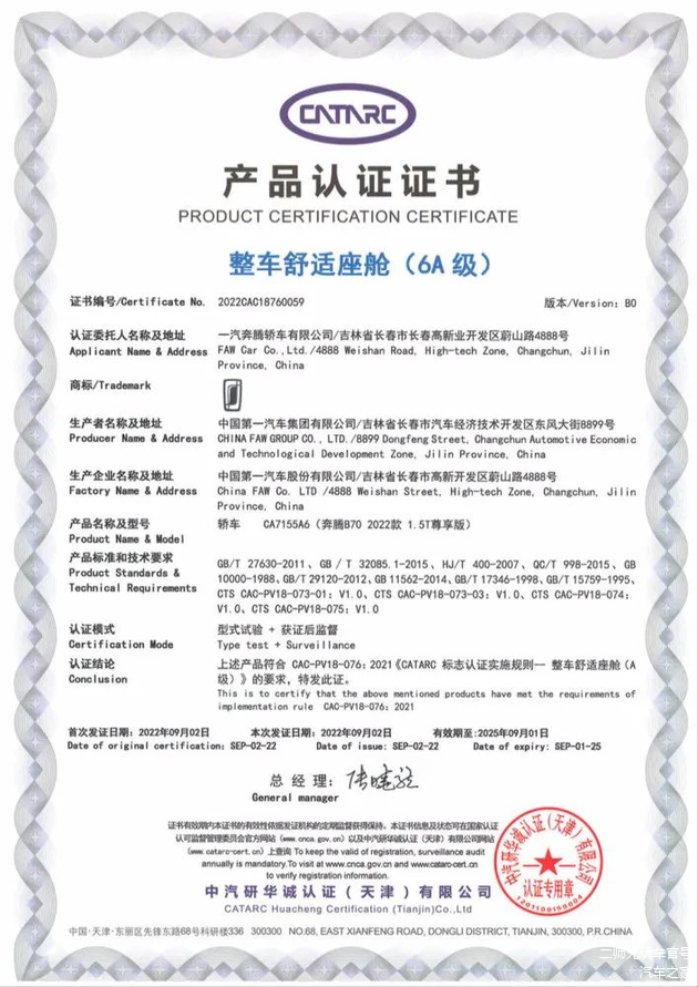 值得一说的是,就在9月4日,奔腾B70获得了中国汽车技术研究中心整车舒适座舱(6A级)认证荣誉,成为目前唯一、首款获此殊荣的轿车产品。