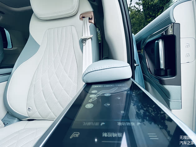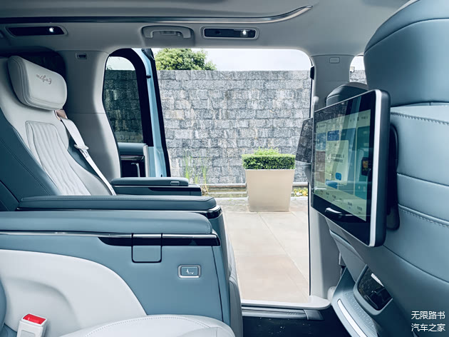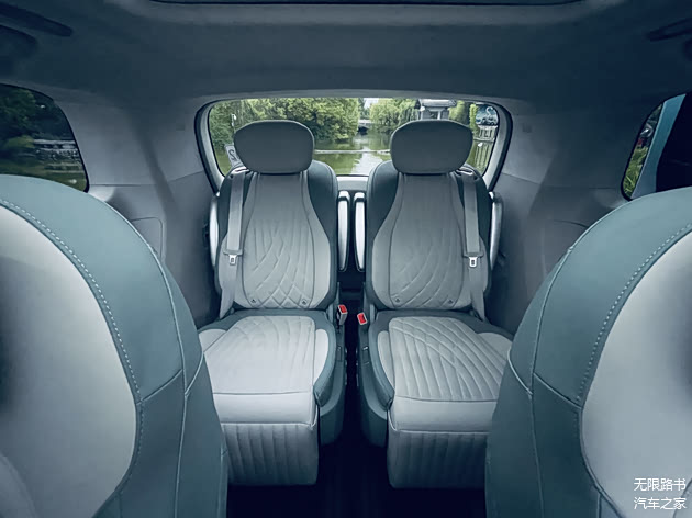 当然,第二排才是整车的精华。首先是侧面窗户很大,而且是可以全部打开的那种,看出去的视野非常赞,坐在车里出示健康码的时候,特别体面,不需要刻意抬手展示,转转手腕即可。很棒。当然,按摩、躺平,这些都是基本功能,就不展开赘述了。