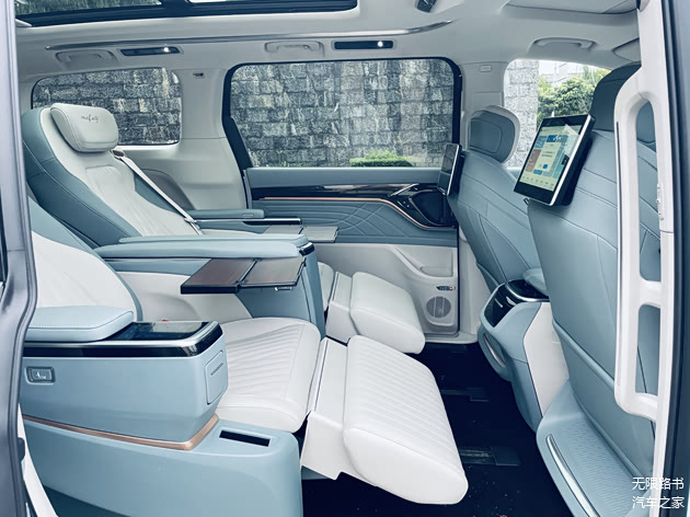 这个设计看上去和大通其他车型毫不相关,其实也很好理解。Mifa未来将是大通全电车型的品牌,而不是一个车型的名字。所以,未来我们很可能会看到Mifa1-8的其他车型。所以是否可以假定这将会是家族化的设计风格呢?除了设计风格大胆之外,Mifa 9的内饰,很多地方让我感觉像是概念车。比如第二排座椅前面的脚托,就感觉很“先锋”。