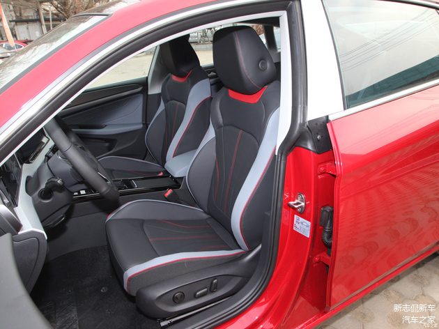 座椅方面对于大众来说,它自己会觉得很运动,但是横向来看这种设计有些过度了,椅背头枕部分的红色装饰有些掉价,感觉不是大众的手笔,但也确实,这台车也确实不像是“大众”车了。