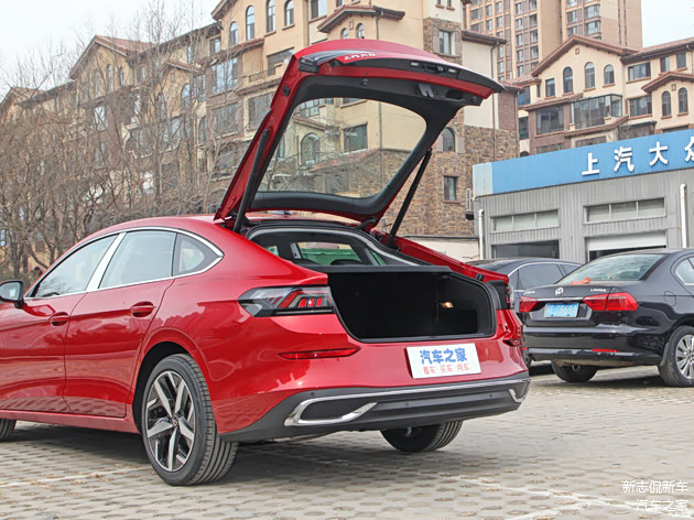 车身侧面你还是能看出MQB平台对这台车的限制的,虽然有着溜背车尾,但是车体和轮胎的比例并不能看出“轿跑”的效果,白话来说就是车子太高了,使得视觉重心也偏高,尤其是前引擎盖的部分,这一点其实马自达昂克赛拉和现代伊兰特做的反倒比较不错,低重心看起来也更加运动。