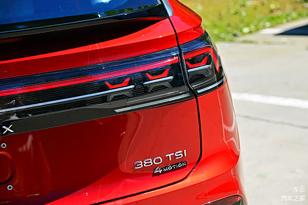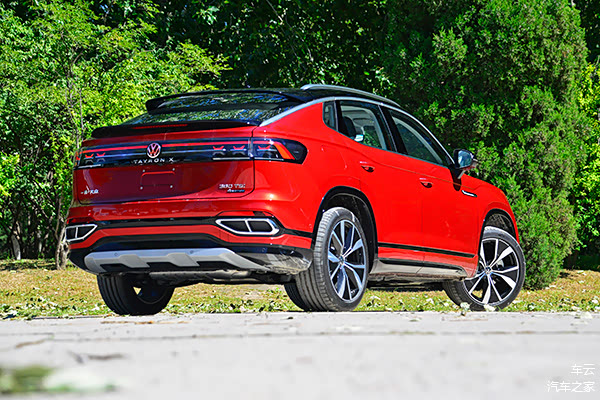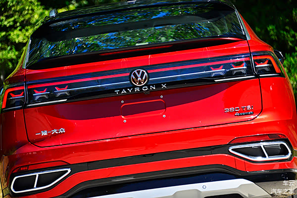 全新设计的尾灯与车头进行了呼应,贯穿式LED尾灯同样内嵌了X元素和徽标,不仅横向拉伸了车尾的视觉宽度,立体感更强,也让尾部造型线条更加流畅,同时下方还配备了双边四处的排气样式和扰流板。可以说全新探岳X在其推出时便奠定的Coupe跨界形象上又更进了一步,年轻、优雅、运动,不禁让我们要将最美大众的名号传递给它。
