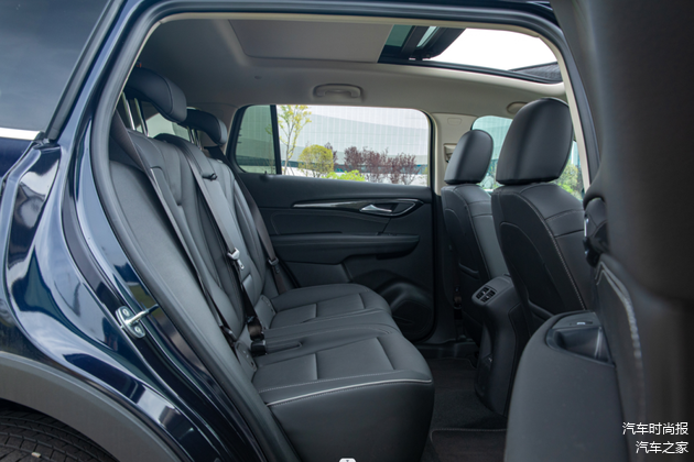 来看看这台5座版昂科威Plus的乘坐空间表现怎么样?我身高1.78m,在调整好驾驶位坐姿的情况下坐进后排,正常坐姿下腿部还有两拳的空间,头部空间还很充裕,算是意料之中的水平。值得一提的是它后排座椅采用了阶梯式的设计,后排座椅相对第一排明显高一截,视野很好,特别是在长途乘坐时这样的设计会有更好的舒适度。比如你是一位容易晕车的乘客,说不定坐上这台昂科威Plus就不晕了。再来细节,它后排的中间地板基本算纯平状态,乘坐五人对后排中间位置的乘客脚下空间更友好;同时,长车身与长轴距还为它带来了一个巨大的后备箱空间,5座版昂科威Plus的后备箱不仅宽大、平整,拓展性也很出色,常规情况下的容积为515L,而在放倒后排座椅的情况下更可实现1712L的巨大容积,其实用性毋庸置疑。对了,昂科威Plus还提供7座版本可供选择,其实用性与舒适性方面相较同级的其它7座SUV车型也有不小的优势。
