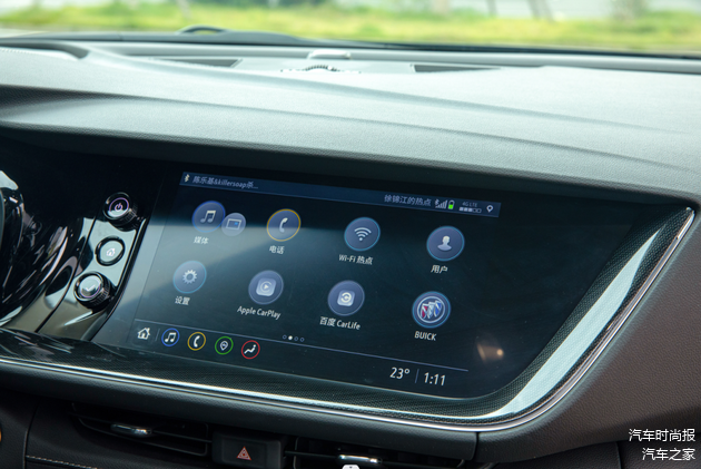 另外,在开过一圈之后我还发现,它在内饰设计上有不少非常人性化的小心思也令人印象深刻。比如这套车机系统的UI设计与操作逻辑就很人性化,最常用的功能被设计在首页,其它如多媒体、空调、导航、座椅功能都被分别按不同颜色布置在显眼的位置上,操作很直观,菜单逻辑简单明了,操作区域的尺寸也不小,就算是在驾驶中盲操作也能从容应对,不仅方便还很安全。当然了,功能性部分大家也请放心。当下的主流功能这套车机系统都具备,这里就不一一列举了;还比如别克家的电子挡设计得也很有新意,不仅看起来简洁时尚,操作起来也很方便。在我用过之后发现,它将D、R两个行动挡位设计成了上扣的形式,剩下的N、P挡则设计成按键形式,既方便,又防止了误操作,不错。
