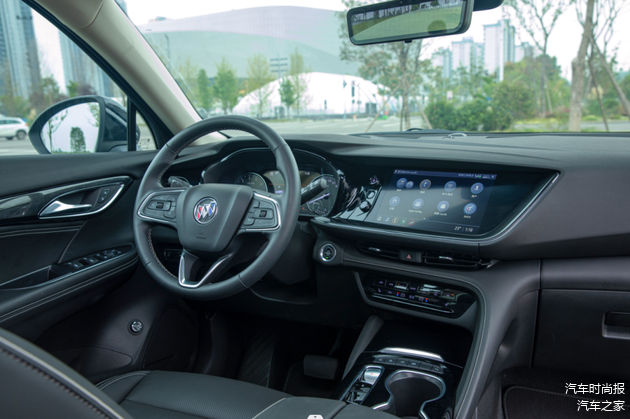 坐进车内,别克家的环抱式座舱依然亲切。中控台的设计对于驾驶员特别友好,整体向主驾一方有所倾斜,并在操作部分为驾驶者做了贴心优化。比如常用的功能键它都安排在了触手可及的位置上,空调控制也保留了实体按键。