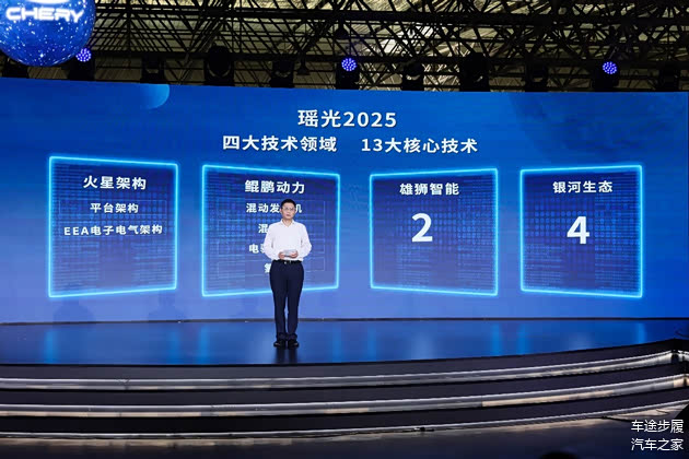 在近期举行的首届“瑶光2025科技 DAY”活动上,奇瑞汽车首次面向全球公布了“瑶光2025”前瞻科技战略,涵盖火星架构、鲲鹏动力、雄狮智能、银河生态等技术领域,并以“量产一代、开发一代、预研一代”三步走策略打造更多高科技产品,旗下不少经典车型与黑科技都在科技DAY上同步亮相。