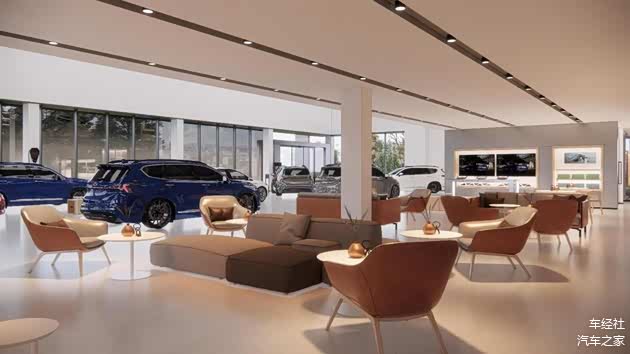 相较于外观,内部的变化更大,与传统4S店侧重于销售与服务所不同,全新的体验中心借鉴了当下造车新势力以客户体验为重的模块化设计,将空间分为产品体验、社交体验、客户关怀、交付体验、业务办公和维修车间六大功能模块,突出科技与生活碰撞,理性与温度融合的独特风格。