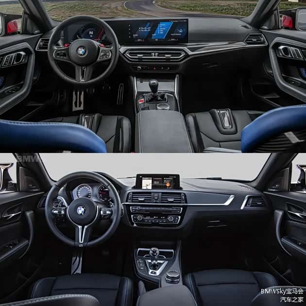 内饰设计我会毫不犹豫选G87 M2,谁说性能车就不能有智能豪华感?我更喜欢iD8系统、M碳纤桶椅等新元素,两款方向盘我都很喜欢,不过宝马...你能不能把M Power的方向盘再做特殊一点呢?