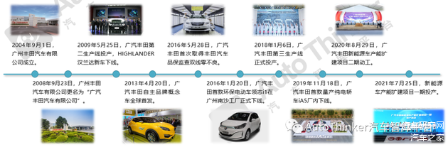 广汽丰田汽车有限公司成立于2004年9月1日,由广州汽车集团股份有限公司和丰田汽车公司各出资50%组建的合资企业。公司位于广州南沙,占地面积363万平方米,目前共有员工超1.9万人。已建成五条生产线,产能100万辆。