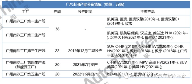 广汽丰田秉承丰田数十年汽车制造之精义,布局了冲压、焊装、成型、涂装和总装等五大生产工艺,取得丰田全球品质监查双线“零不良”,着力打造 “丰田全球模范工厂”。产品方面,目前广汽丰田产品线涵盖燃油车、HEV(混合动力车型)、EV(电动车型)、PHEV(插电式混合动力车型),是国内集多种动力技术于一体的全擎全动力汽车生产服务提供商。