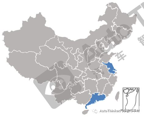 从市场分布来看,广汽丰田市场主要在南方省份,主要集中在广东、江苏、浙江等沿海地区。
