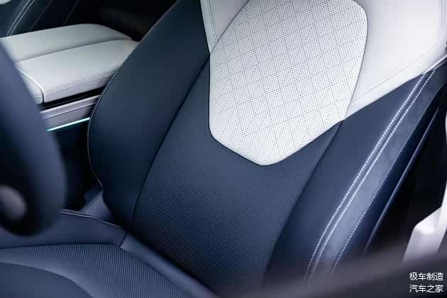 ▪ 真皮打孔座椅坐感舒适,前排座椅包裹感更为明显,而后排座椅相对前排要稍微硬一些,有利于保持长时间乘坐的支撑性。