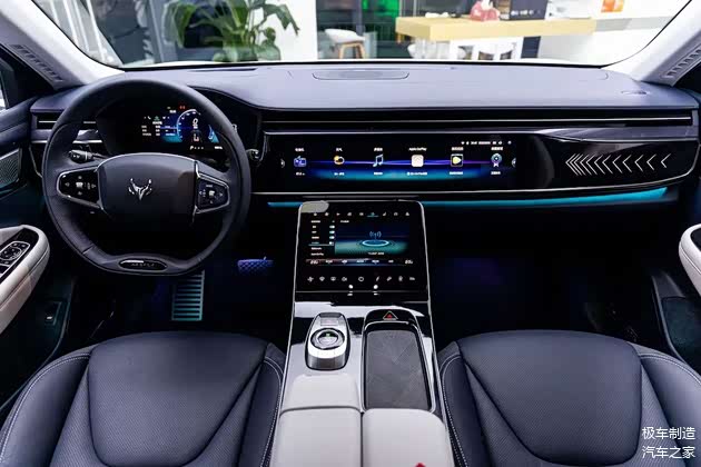 由于在设计风格上,阿尔法T无论是车头的无边界前脸、“X”元素造型、仿生学LOGO和头灯细节,还是由一道深刻腰线、光影形面、隐藏式门把手、花瓣式五幅低风阻轮毂构成的车身设计要素,乃至同样采用极简手法的车尾设计,整体营造出的都是一种带着犀利感和未来感的数码风视觉效果——因此,如果只在图片或者视频中你不会觉得它还是一个“大块头”。