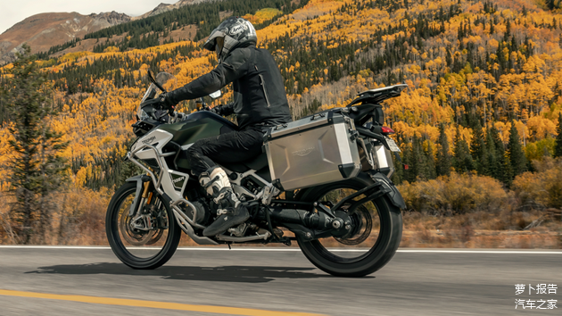 在车身其他部件上Tiger 1200也做了改进,在油箱、脚踏、座垫上下了功夫,营造出的骑行三角更有利于骑士操控。传动轴采用更小的设计,密封效果也更好,同时重量也有所降低。