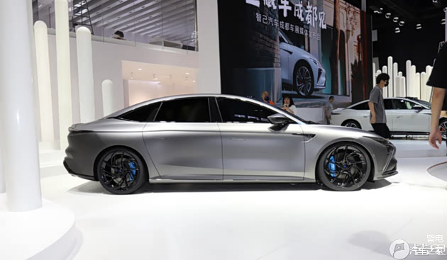 车侧相当修长,整个比例也符合大家对一台传统中大型轿车的印象,腰线从前翼子板处一直延伸至尾灯组附近。同时,新车换装一款21英寸锻造轮毂,锻造轮毂最大的好处就是轻,能降低簧下质量,有利于操控。轮毂内部清晰可见Brembo蓝色卡钳,值得一提的是普通版L7的百公里制动成绩已经达到32.69米这个水平。