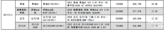 中保研《第14期汽车零整比体系数据》50万以上车型汽车零整比系数