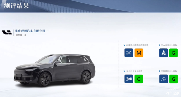 作为理想汽车旗下的一款大型SUV,理想L9也参与了中保研的碰撞测试,而且获得了非常优秀的成绩。具体来看,理想L9的车内乘员安全指数、车外行人安全指数、车辆辅助安全指数全获优秀(G)评价,耐撞性与维修经济性指数则是一般(M)评价。值得一提的是,理想L9也进行了乘员侧正面25%偏置碰撞,并且获得了优秀评价。