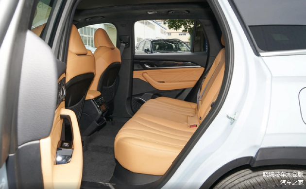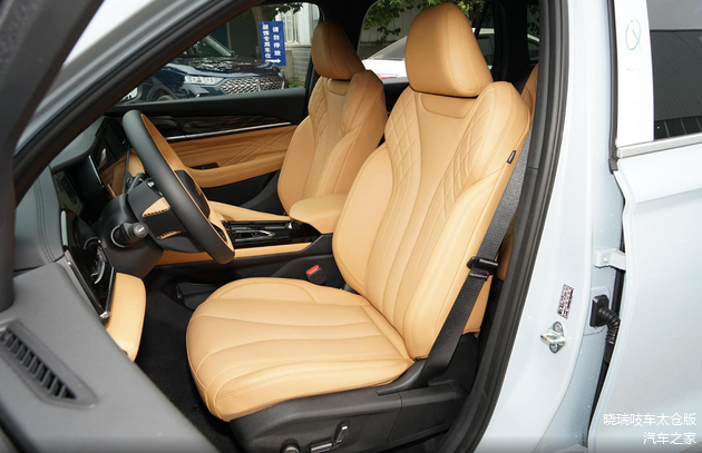座椅及空间方面,前排真皮材质座椅支持加热通风功能,主驾驶位还支持记忆功能。后排有独立空调以及支持靠背角度的调节,同时得益于较大的车身尺寸(长宽高分别为4770/1895/1689mm,轴距为2845mm),后排空间是十分宽裕的。