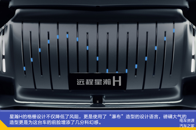 “流星灯语”的设计不仅体现在LOGO的呼吸灯和前大灯大灯组,还在气动格栅中也有相应的提现。虽然新能源重卡是不需要格栅“进气”,但星瀚H的格栅设计不仅降低了风阻,更是使用了“瀑布”造型的设计语言,磅礴大气的造型更是为这台车的前脸增添了几分科幻感。