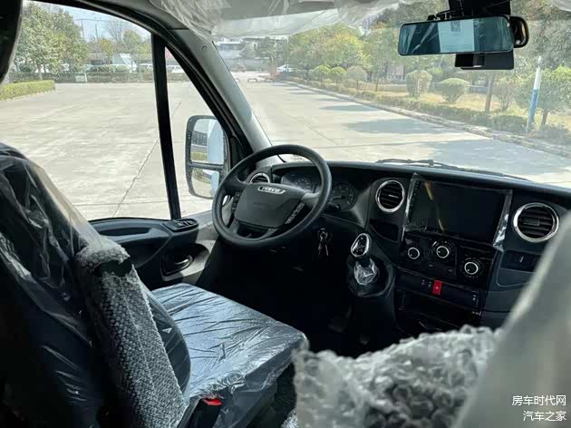 驾驶室有主副驾驶两张座椅,设计有可收纳扶手,帮助缓解驾驶以及乘坐疲劳,驾驶室同后方生活区为通舱的设计,可以从驾驶室直接进入后方的生活区,增加了整个区域的功能性与交流性。驾驶辅助安全方面,车辆配备了倒车影像、四路监控、流媒体后视镜等,保障一路的驾驶安全。
