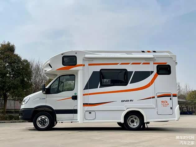 车辆采用了新铜爵玻璃钢前额头以及五明治全铝车身,车身以白色为主,装饰有深灰色以及橙色的拉花,额头位置印有“QINGDI RV”logo,简约不失活力。