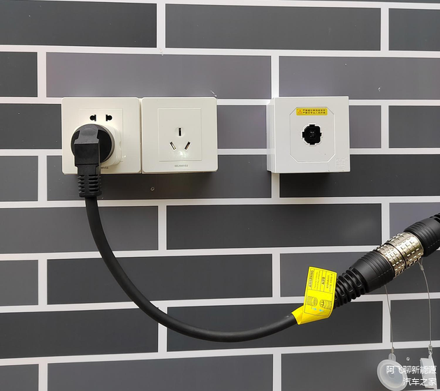 如果在外没有找到16A的插座,可以换上10A转接头直接插普通的10A插座使用,但是要把电流调小,充电时间也会变长。虽然充电速度慢但总比汽车趴窝好。
