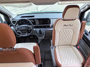 中排奢华航空座椅带有360度旋转多达14项调节功能(按摩5项、腰托4项、通风、加热、记忆3项、还有7种颜色氛围灯等),以及170°符合人体工程学设计能使您更有效的解除舟车劳顿。中排座椅转过来后可以形成小型会议室布局,中间有张隐藏式办公桌板瞬间满足会议使用需求。