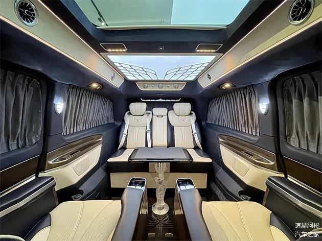 这款定制改装的奔驰V260L巴塞罗那版,外观顺畅的车身流线搭配高顶设计,摆脱了传统商务车的笨拙,使奔驰V260L看起来十分的稳重大气,内饰通过改装实现了满足商务接待、洽谈、出游等各种出行需求。内饰风格和品质当然也要向豪华靠齐。大量纳加拉丝皮包覆内舱,枫木饰板覆盖整个中控台,档次感以及舒适度都得到极大提升。