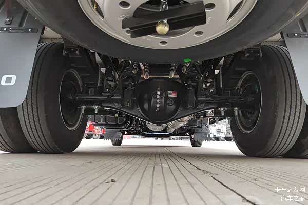 与发动机匹配的是法士特8速手动挡变速箱,带有铝制壳体和同步器的配置。后桥采用汉德重汽专用轻卡车桥,后桥速比可选4.333与4.875,配备鼓式制动器和断气刹,与潍柴WP2.5N发动机,法士特变速箱组成了黄金动力链。