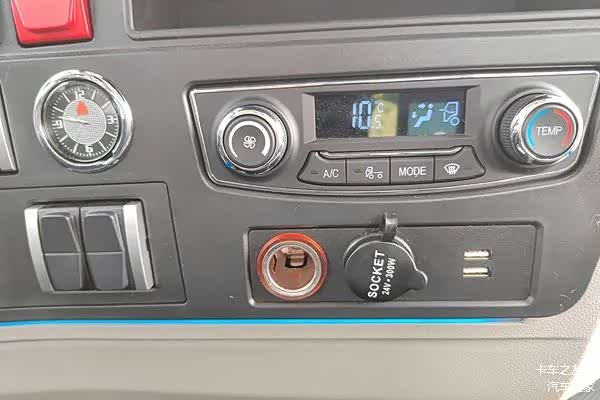 中控屏下方是独立数显空调控制面板,直观显示温度、风速、出风方式等信息。下方设置有24V(300W)接口和双USB接口,设计贴心实用。