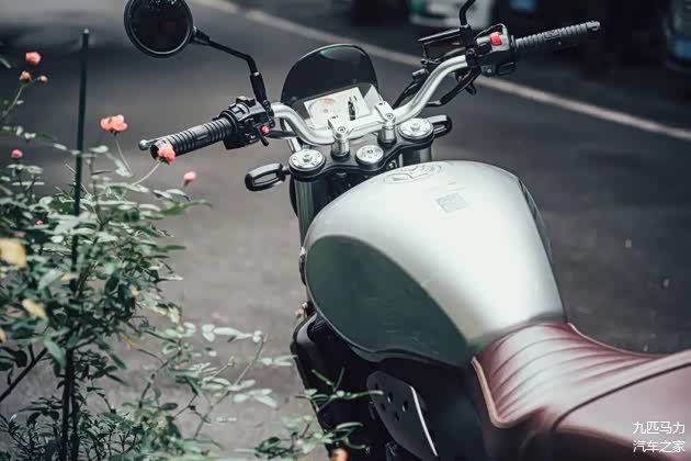 油箱的外形设计在采取了复古车常见的水滴形外,针对其运动化的取向还增加了一些肌肉感十足的线条,这样看上去既有复古车的范又有运动感较强的视觉冲击,可谓一举两得。油箱容积为20L,对于这样一辆复古车来说,日常出行加油频率会减少很多,即便是长途旅行,也能提供相当不错的续航里程。