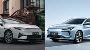 来到车身侧面,继续采用了溜背式的车身造型设计,新车在车窗外沿、门把手以及前翼子板装饰件等处进行了熏黑处理。另外新车还延续了四门无框车门的设计。车身尺寸为:4970*1964*1445mm,轴距为2960mm,定位中大型纯电动轿车。