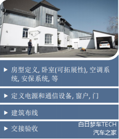 开发E/E架构就和盖房子类似,盖房子需要定义各个房间的功能,E/E架构也需要定义各个功能域的功能表现和实现方案,如灯光功能、动力功能、辅助驾驶功能;盖房子需要定义气路、水路、门窗位置,E/E架构也需要定义整车的通信形式、供电回路,线路连接;盖好房子要布线、搬家,E/E架构也需要将各个功能集成到整车中;最后房子会经过客户验收,E/E架构也会经过工程师反复验证,最终将车交付到客户手中。